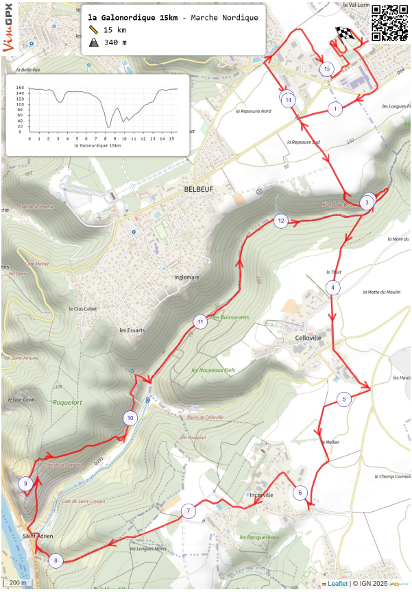 La Galonordique est une épreuve de Marche Nordique chronométrée se disputant en auto-suffisance sans ravitaillement intermédiaire. La parcours d’une distance totale de 15km est en majorité sur chemin. Le dénivelé est d’environ 340m.